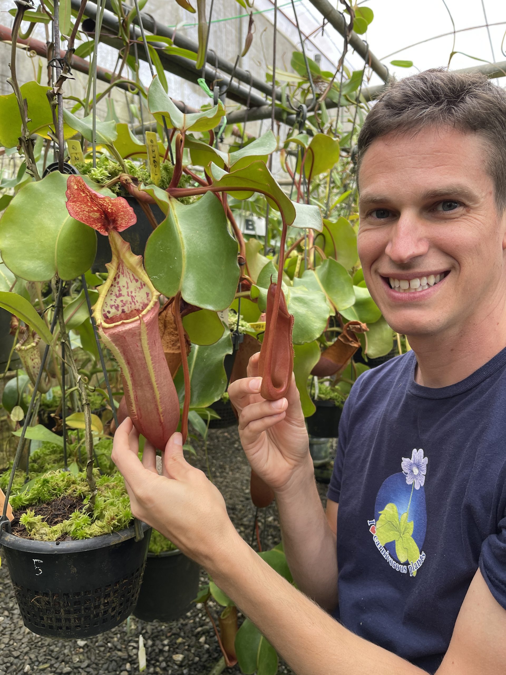 The first photo is of a pitcher in cultivation in another collection, but will be very similar to plants shipped. and the second is of the actual plants to be auctioned, which will be sold from the largest size down to the smallest, with none being smaller than our small size category.”
