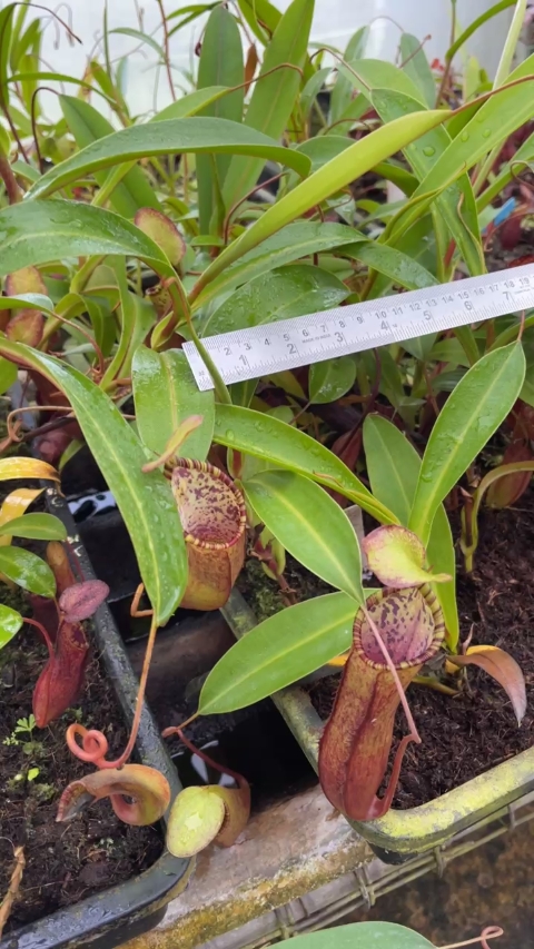 This is a true natural hybrid propagated only from cuttings taken from the original nursery mother stock. The female parent is a Gng. Trus Madi form of N. lowii and the male parent is a N. tentaculata, also from Gng. Trus Madi. This natural hybrid is rarely observed in the wild. It has taken us decades to grow these plants up to the point where we can sustainably produce from cuttings, and we are proud to have persevered and reached this point. We think this is a wonderful hybrid!