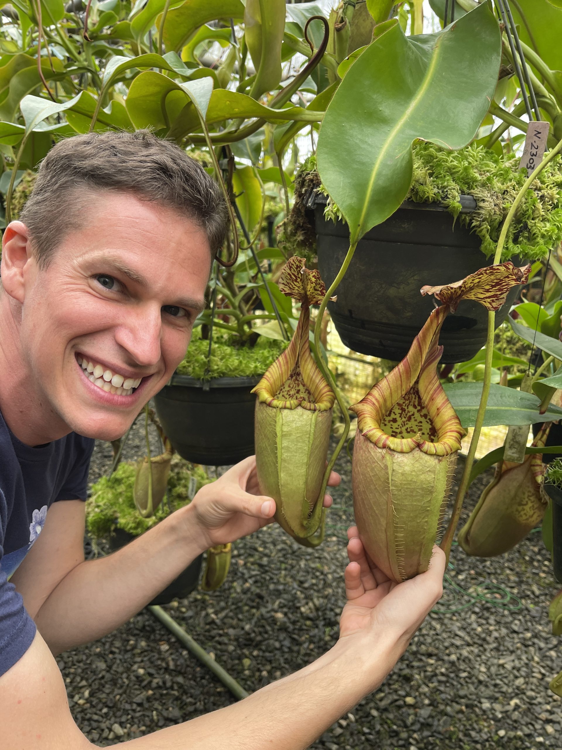 Origin: Horticultural, bred by Borneo Exotics. The female parent is a selected seed-raised candy-striped clone of the Bario form of N. veitchii and the male parent is a seed-raised N. burbidgeae, selected from the same grex as those formerly offered under BE-3042.