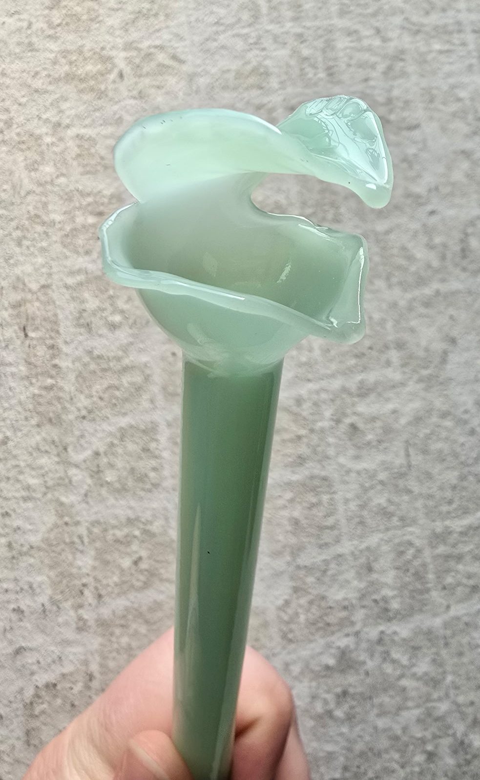 One (1) Sarracenia Pitcher Plant Glass Stake — Milky Jade (8.5″)